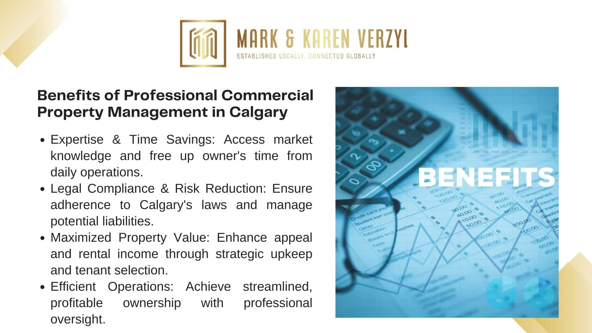 Professional management brings numerous benefits, including expertise, time savings, and legal compliance. Mark Verzyl Real Estate, with its commitment to excellence in commercial property management throughout Calgary, is well-positioned to support property owners. For personalized consultation, property owners can contact Mark Verzyl Real Estate at +403-617-9998.