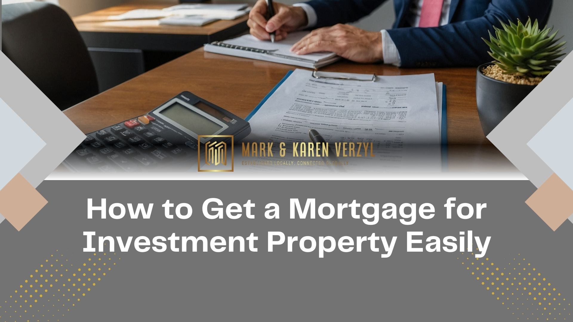 IMAGE PROMPT (FEATURED): Professional real estate investor sitting at a modern desk reviewing mortgage documents and property listings, with a calculator and laptop showing investment property photos, warm office lighting, clean contemporary setting, landscape orientation