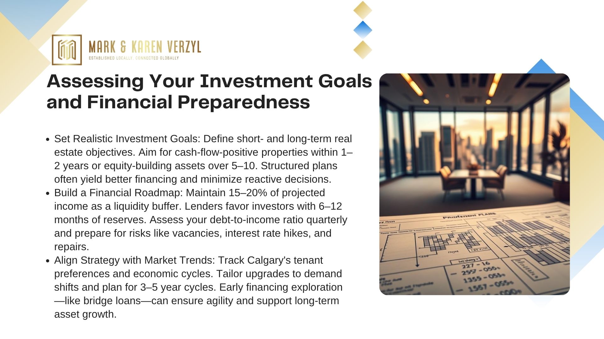 Short-term goals might focus on acquiring cash-flow-positive assets within 12-24 months. Long-term plans often involve building equity through value-add properties over 5-10 years. For example, a 2023 Alberta Lenders Association study found investors with 5-year roadmaps secured 23% better financing terms than those without structured plans.