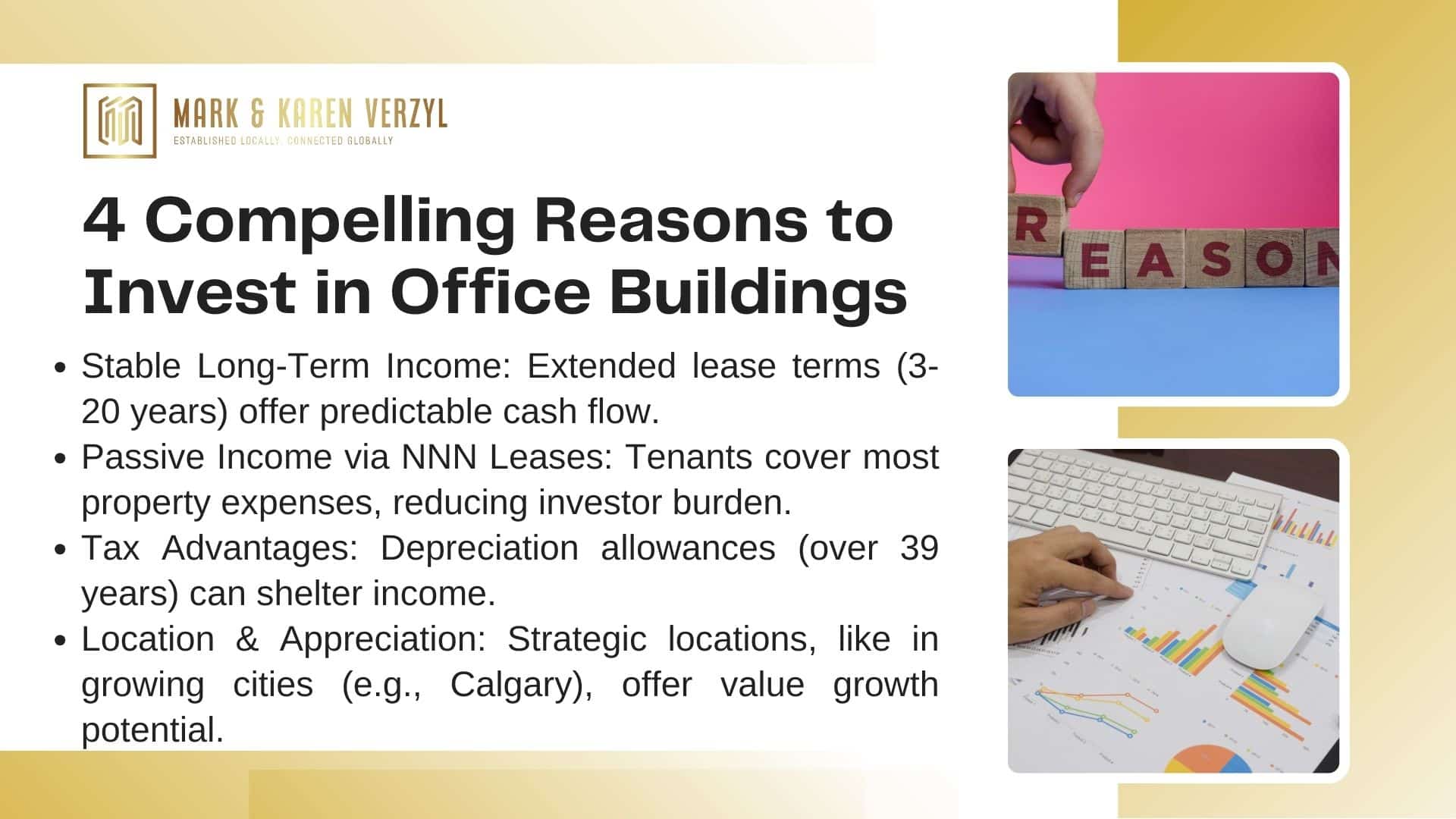 Mark Verzyl Real Estate offers comprehensive guidance through every stage of the office building investment process. Whether you’re considering direct ownership, partnerships, or alternative investment vehicles, they provide tailored strategies to help investors achieve their commercial property investment goals in Calgary.