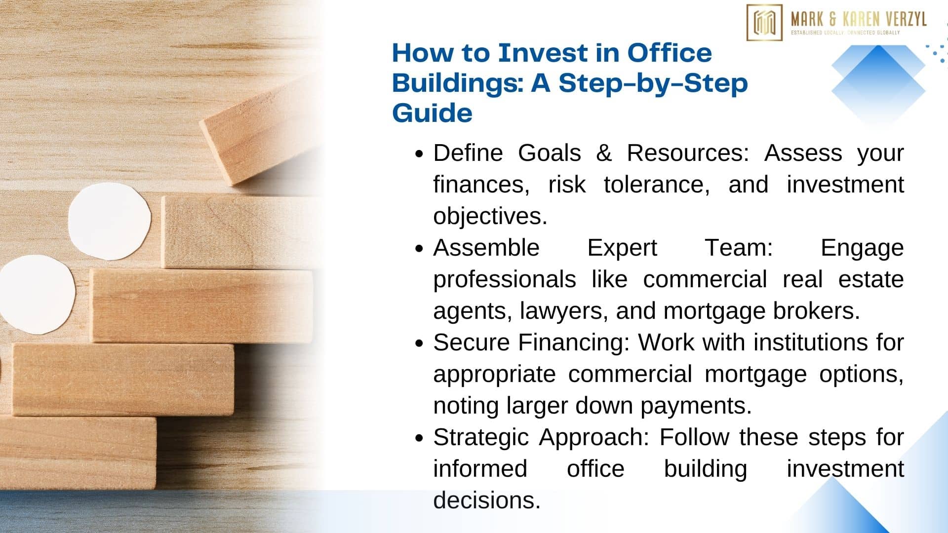 By following these steps and leveraging the expertise of professionals like those at Mark Verzyl Real Estate, investors can navigate the complexities of commercial property acquisition and make informed decisions.