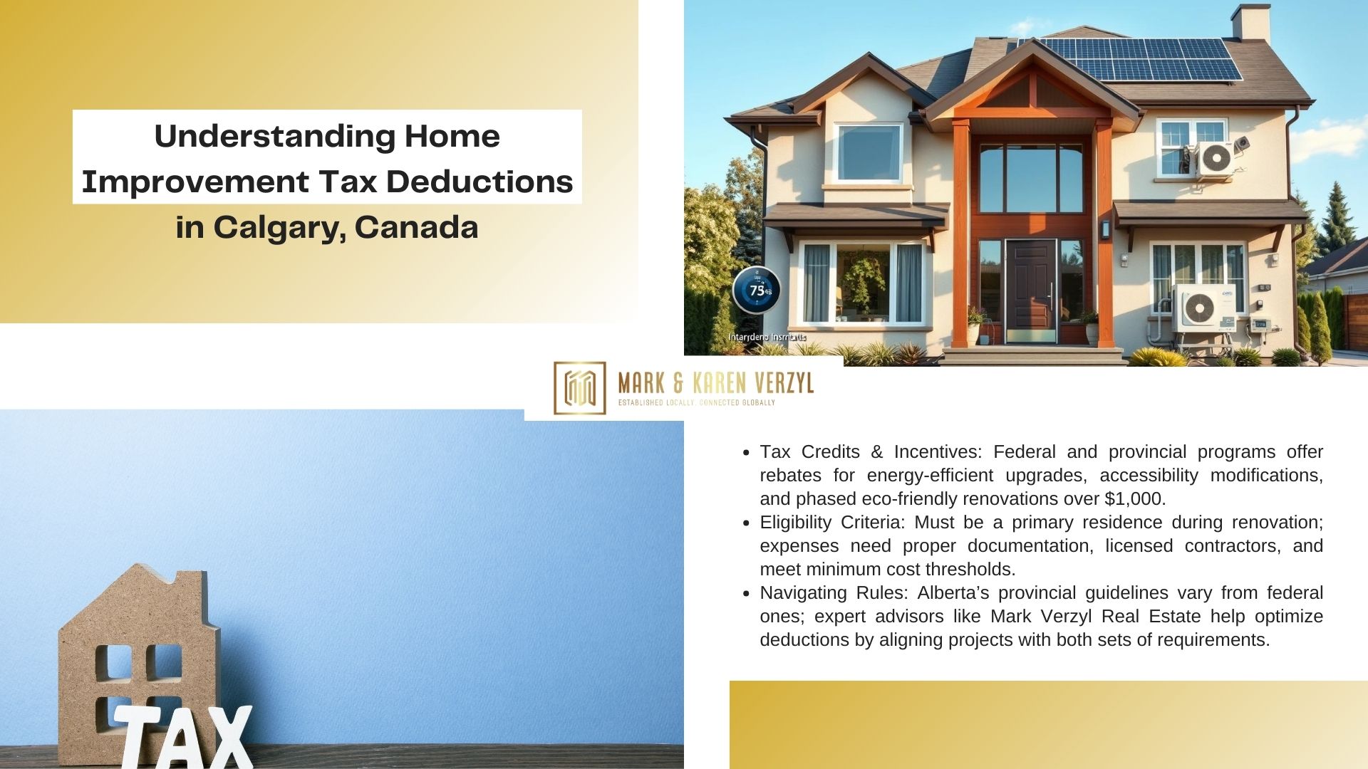 Well-executed renovations boost property value while leveraging available credits. For tailored guidance on qualifying improvements, contact Mark Verzyl Real Estate at 403-617-9998. Turn strategic upgrades into lasting financial advantages with expert local insights.