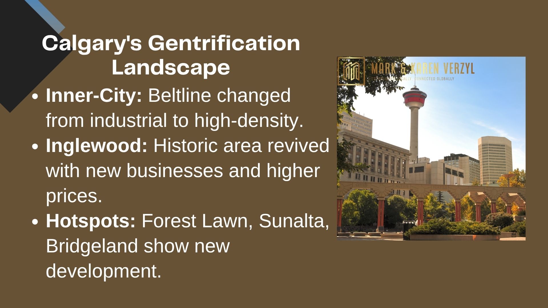 In 2024, Calgary saw 142 rezoning applications. Mark Verzyl Real Estate keeps up with urban changes. They look at many factors to advise clients.