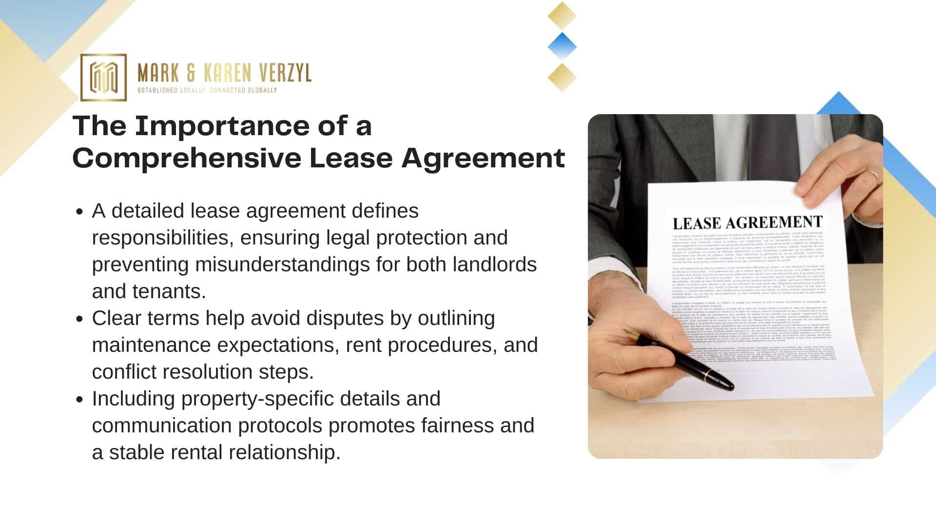 - A comprehensive lease agreement protects both landlords’ and tenants’ interests.